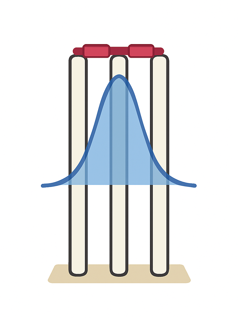 If we move the mean prediction around, we can see that at some point it changes from it being reasonable to unreasonable to give someone out off of the ball prediction (given some threshold confidence you want to have i.e. 95%). Umpire’s Call was introduced because the ICC decided that the point at which the mean prediction switches from being reasonable to unreasonable, crossing their chosen confidence threshold for LBW decisions, is when exactly half of the ball is predicted to hit the stumps. They decided that when less than half of the ball was hitting the stumps, the Umpire’s decision was to be trusted – the ICC had more confidence in the Umpire to predict the flight of the ball at this point than the ball prediction system. Hence, we have Umpire’s Call.